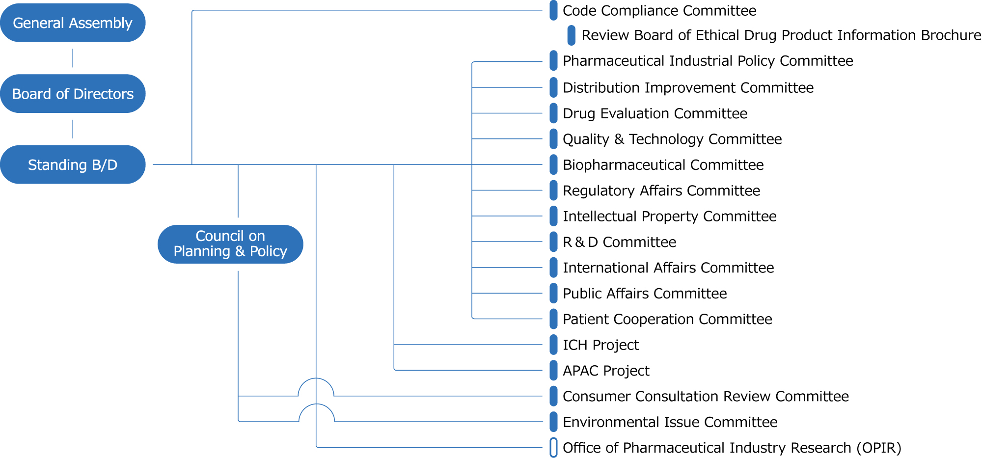 | Code Compliance Committee | Promotes compliance among JPMA member companies, administers the JPMA Code of Practice, and supports member companies' code compliance promotion activities. |