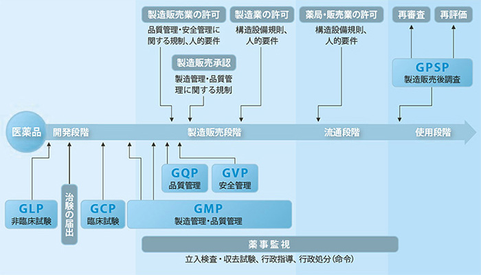 GQP (Good Quality Practice), GVP (Good Vigilance Practice), and GPSP (Good Good Practice in Post-Marketing Surveillance and Testing) are also in place for drugs in the distribution and sales stages. In addition, voluntary standards have been established to ensure that the quality of drugs is not compromised by temperature, humidity, light, or other factors at each stage of storage, shipment, and delivery.