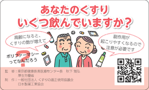 The Pharmaceutical Manufacturers Association of Japan (PMAJ) and the Japan Council on the Proper Use of Drugs (JCPC) have produced a series of educational materials for the general public to promote the proper use of pharmaceuticals, under the supervision of Dr. Masahiro Akishita, Director of the Tokyo Metropolitan Geriatric Hospital Center for Health and Longevity, who is an expert on polypharmacy issues, and the Ministry of Health, Labor and Welfare.