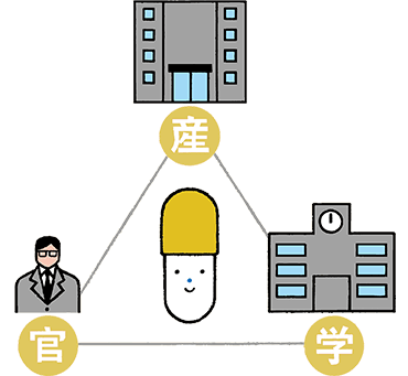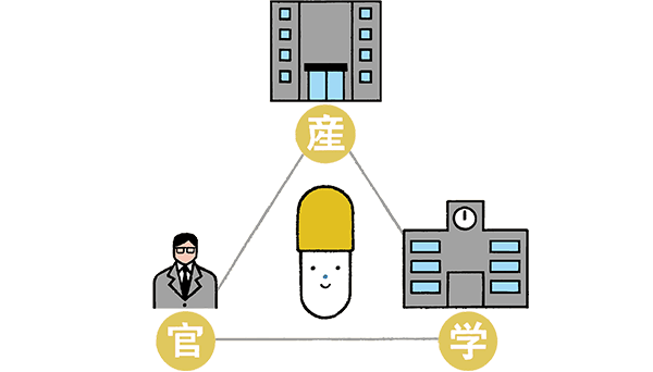 In order to strengthen the development of new drugs, smooth collaboration between the pharmaceutical industry, academia (universities, etc.), and the national government is essential.